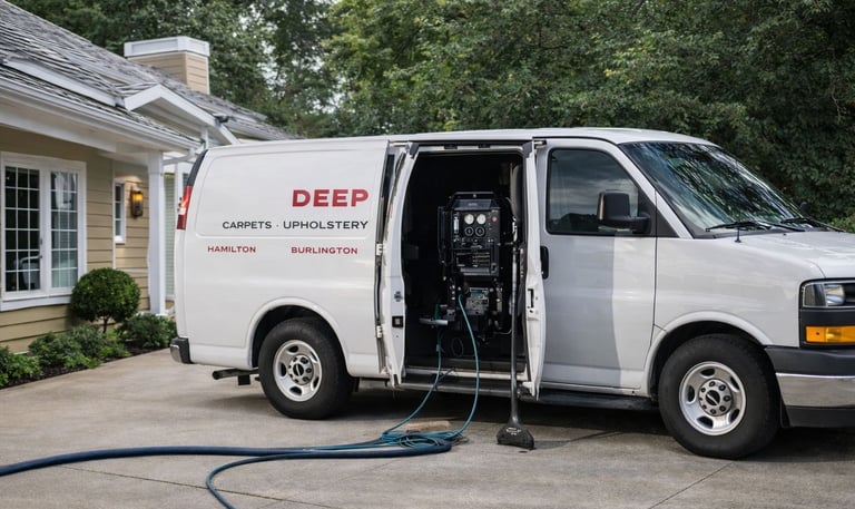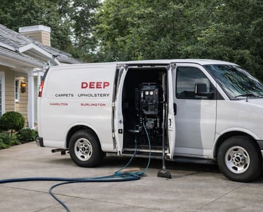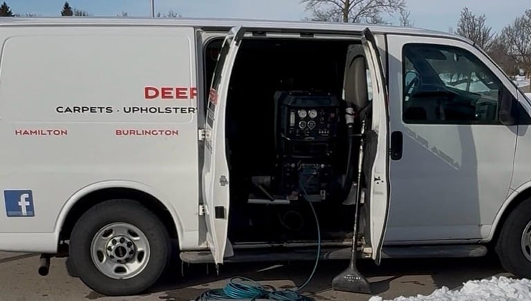 Our truck-mounted steam cleans grime and grease effectively with intense heat.